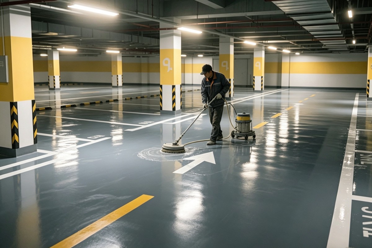 保定定兴贤寓镇停车场车库聚氨酯地坪施工厂家